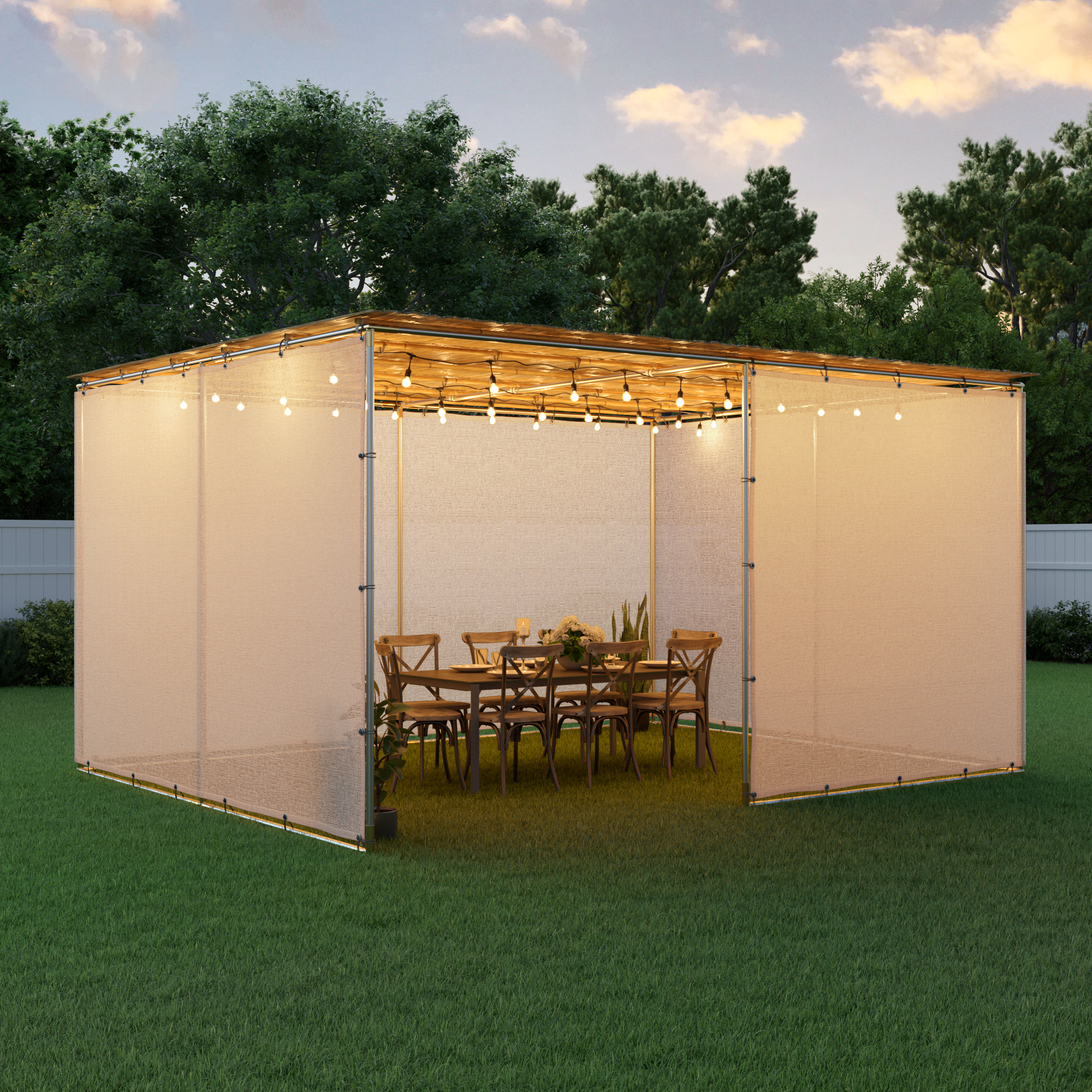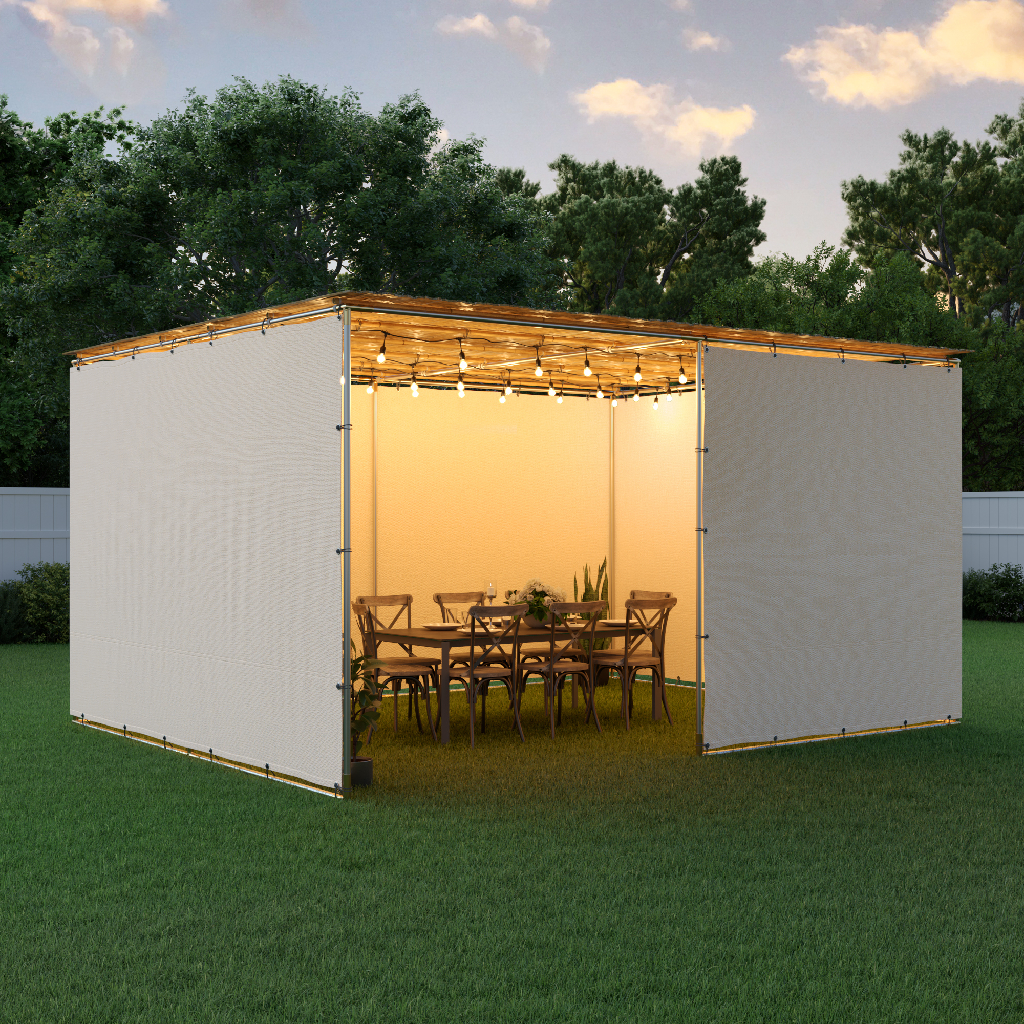 • SukkahScreen™ or Canvas wall material & elastic bungees