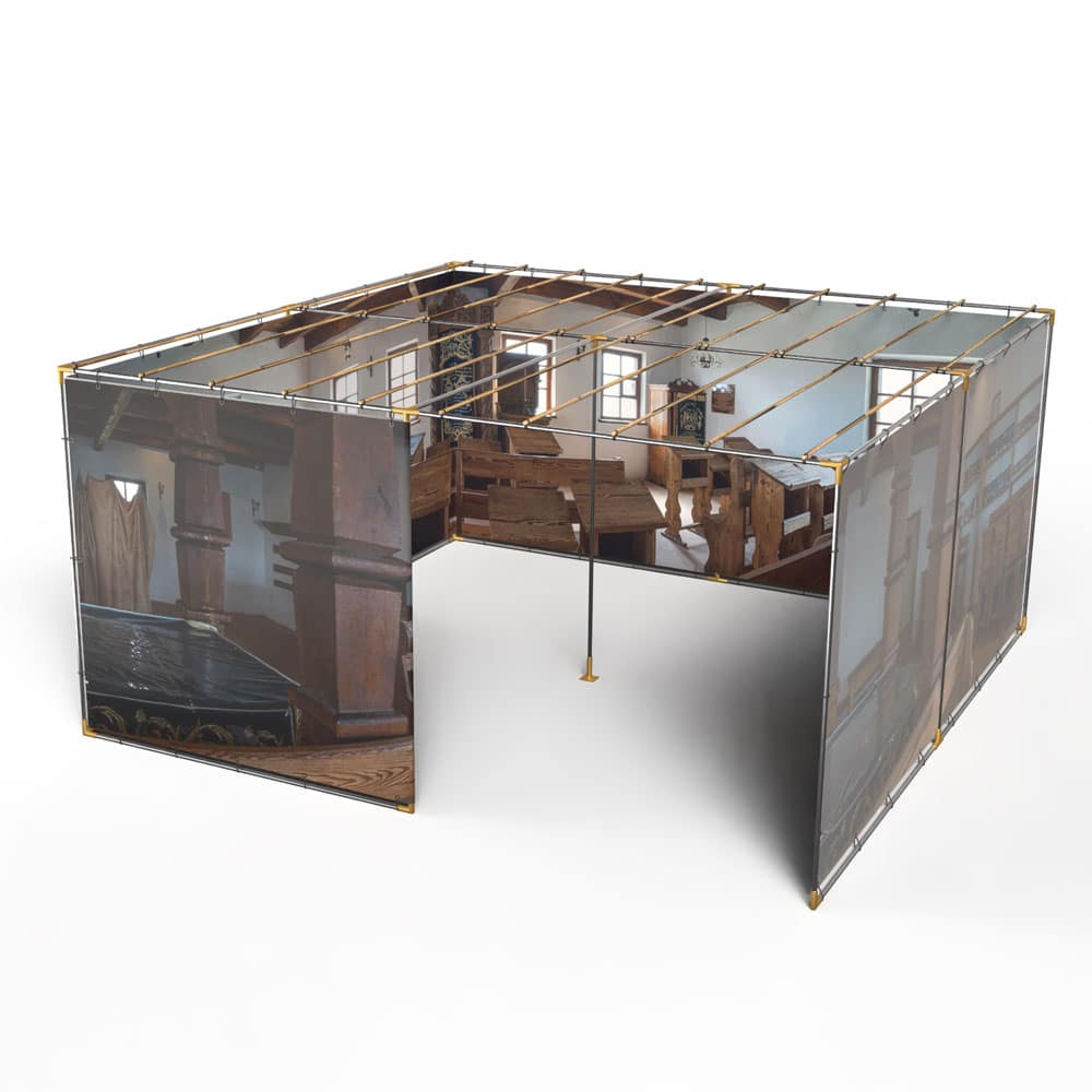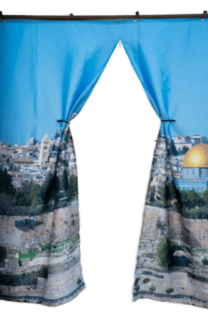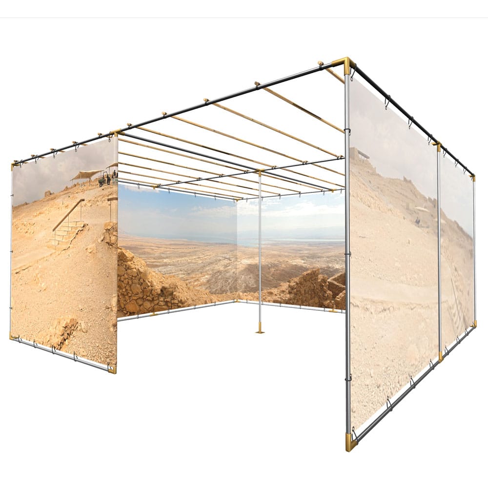 • The Panoramic Sukkah is printed on outdoor banner fabric—a durable, mold-resistant polyester that drapes beautifully and feels substantial and luxurious!