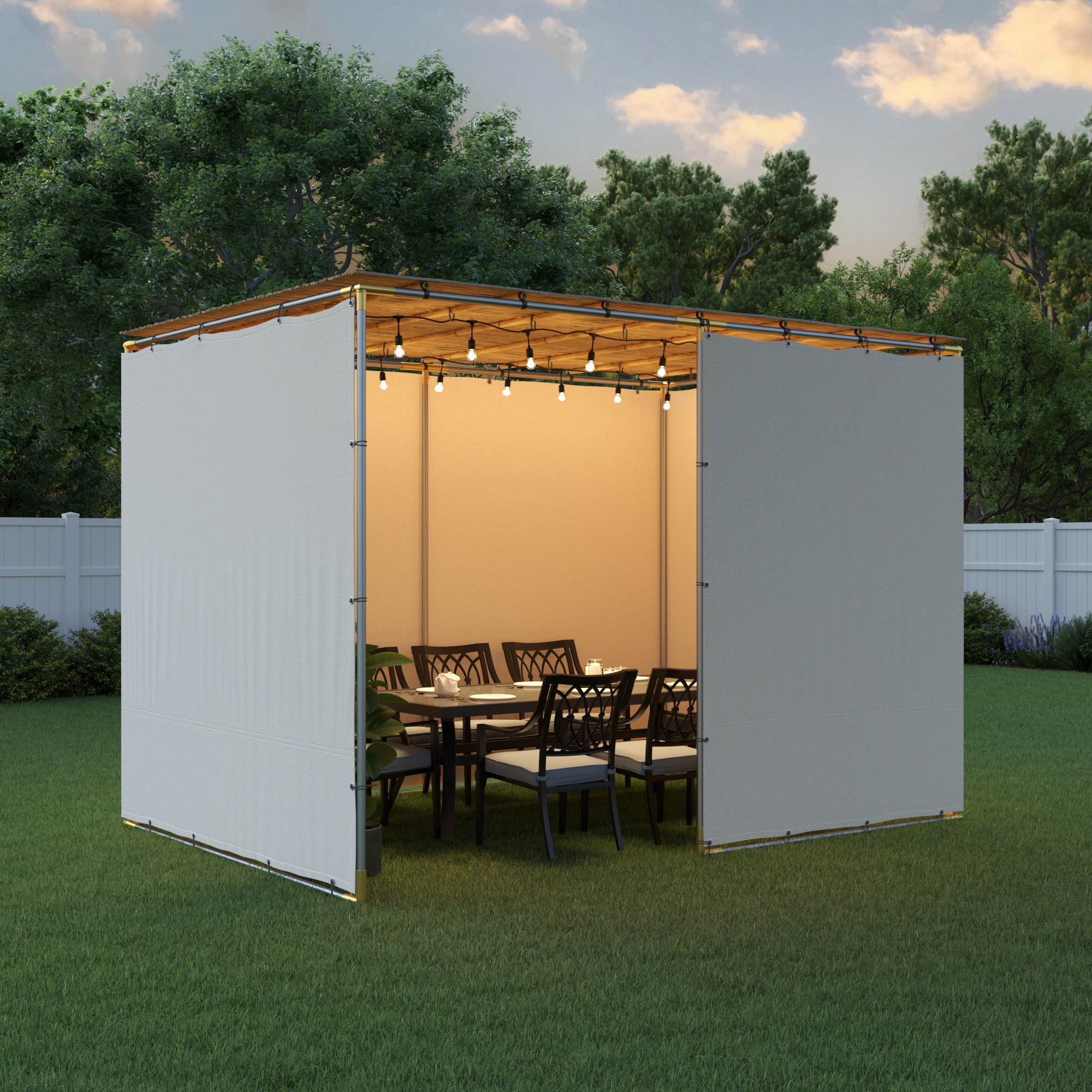 • SukkahScreen™ or Canvas wall material & elastic bungees