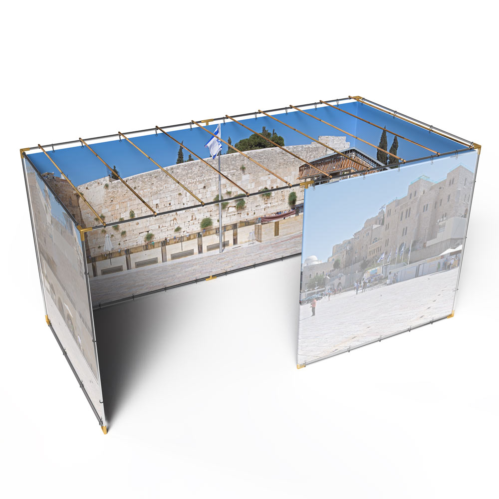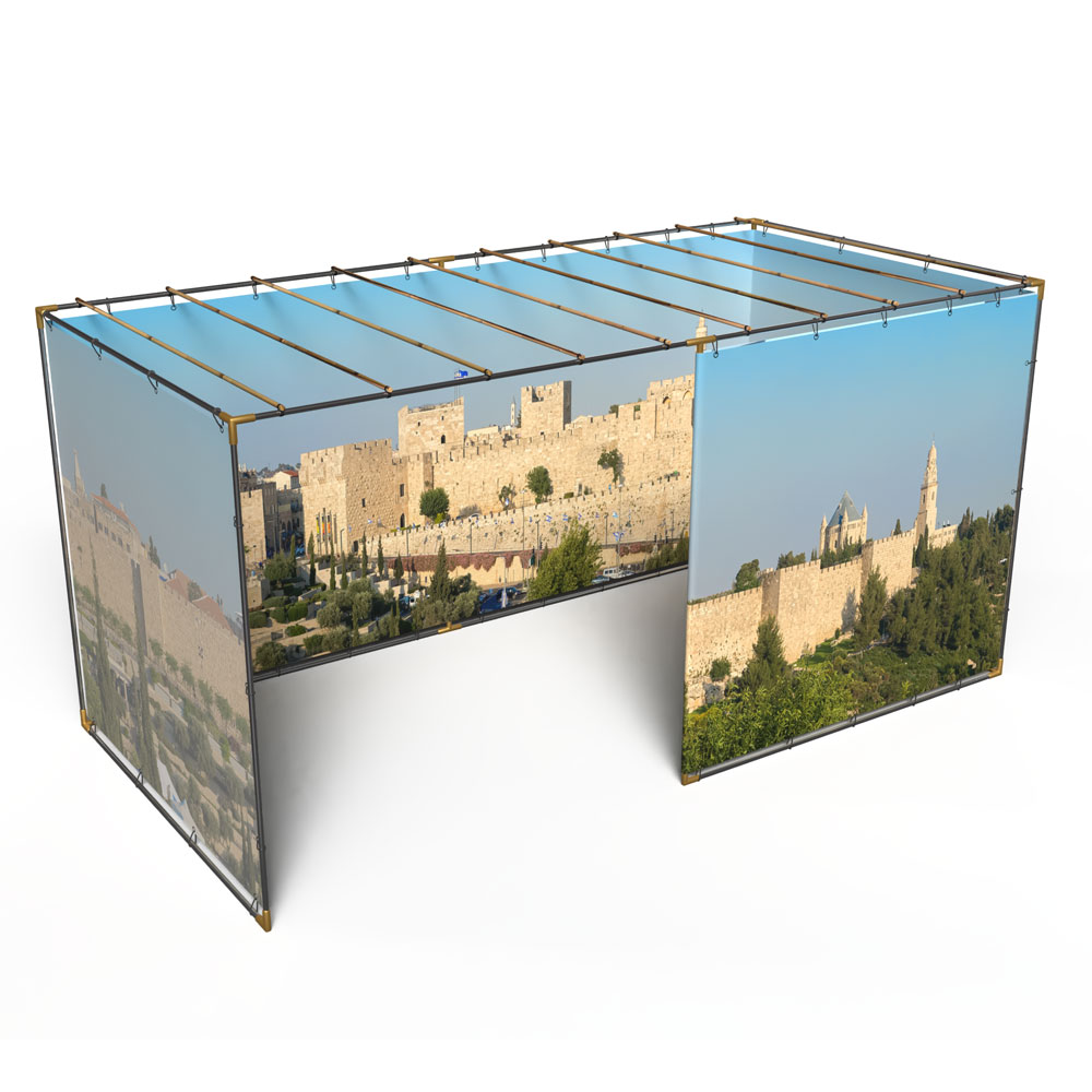 We purchased the 8x12 Wood Frame Sukkah Kit for Sukkot 2024. My husband and his friend were able to put it together in one afternoon easily. Our Rabbi said it was one of the most beautiful sukkahs he had been in. We also purchased some of the weatherproof artwork and we received many compliments from friends on the beautiful prints.