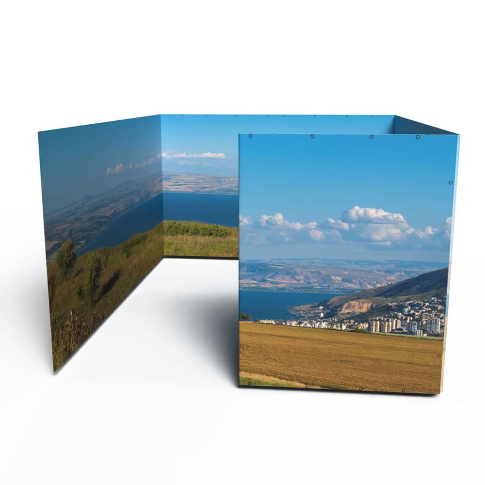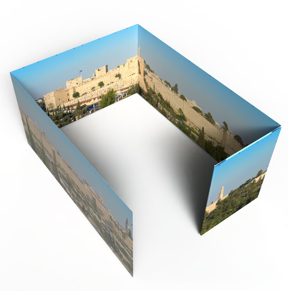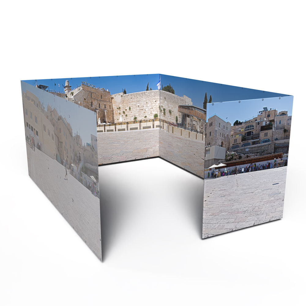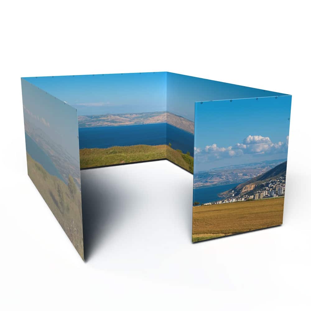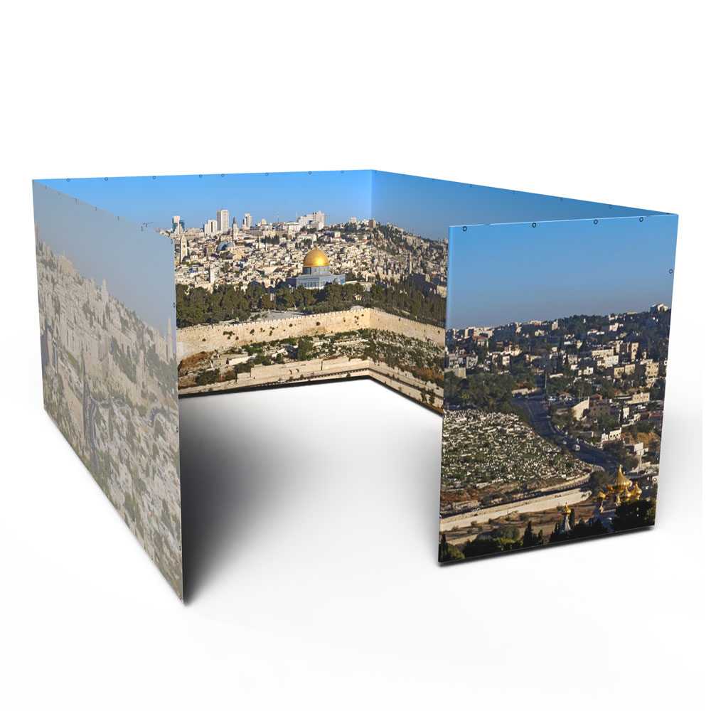 Ready to upgrade your sukkah walls and spend your Sukkot immersed in an Israeli vista of your choice? If you already own a 12×16 Sukkah Project® tubular metal sukkah frame and want to make it even more beautiful with Panoramic Sukkah walls, you’ve come to the right place!  Please note, this product includes the Panoramic Sukkah walls ONLY for a 12×16 Sukkah Project® tubular metal sukkah; it does not include the frame, bungees, bamboo roof poles, etc.  If you would like to purchase a full Panoramic Sukkah kit, you can do that here: 12×16 Panoramic Sukkah Kit.