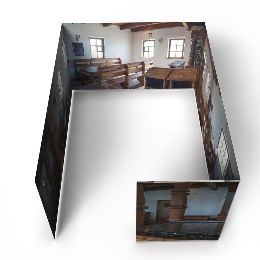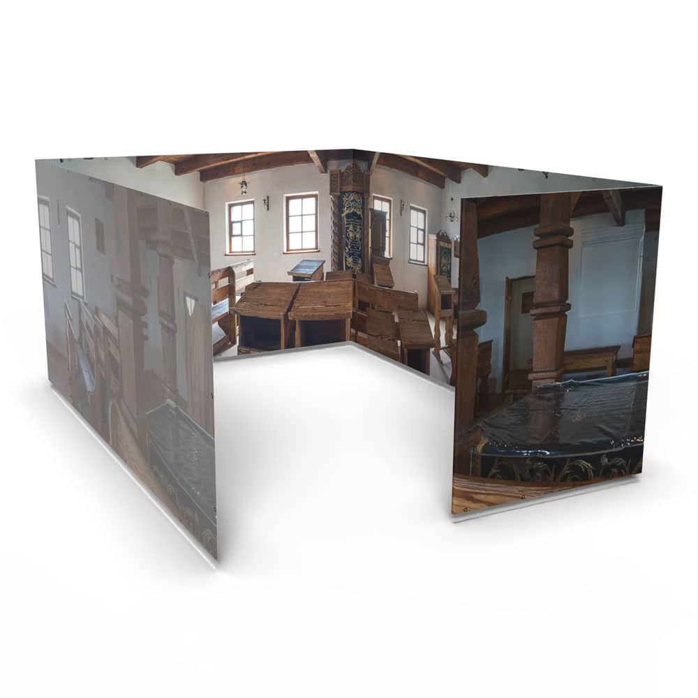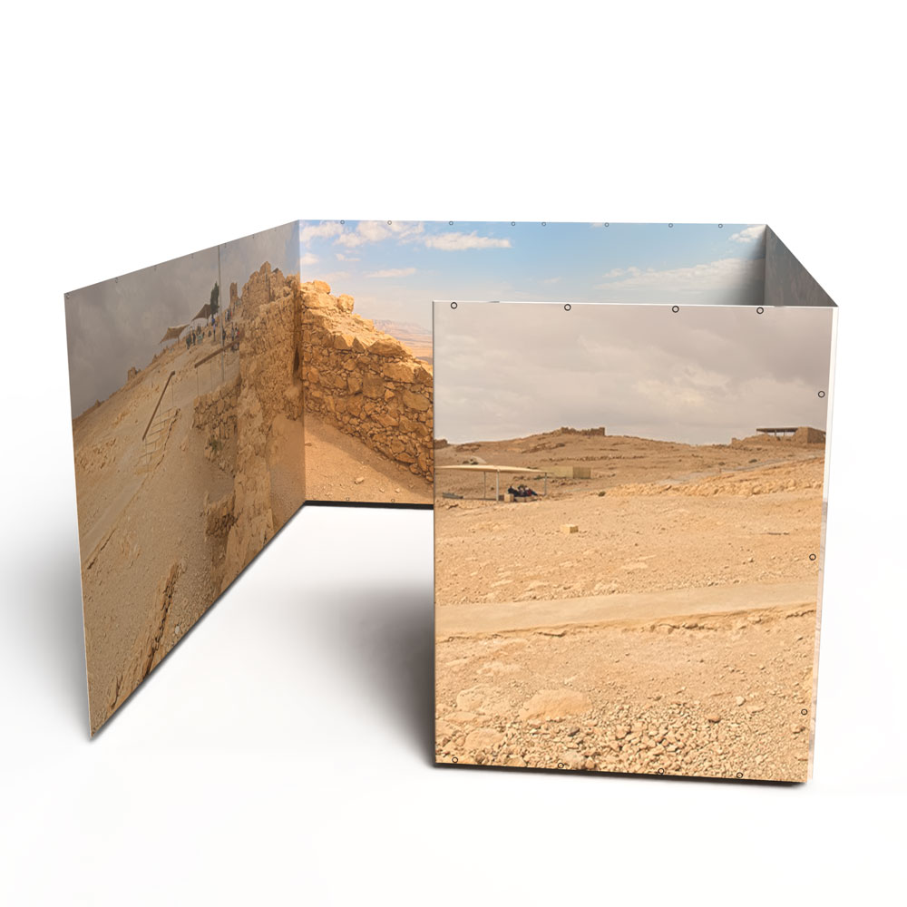 • The Panoramic Sukkah is printed on outdoor banner fabric—a durable, mold-resistant polyester that drapes beautifully and feels substantial and luxurious!