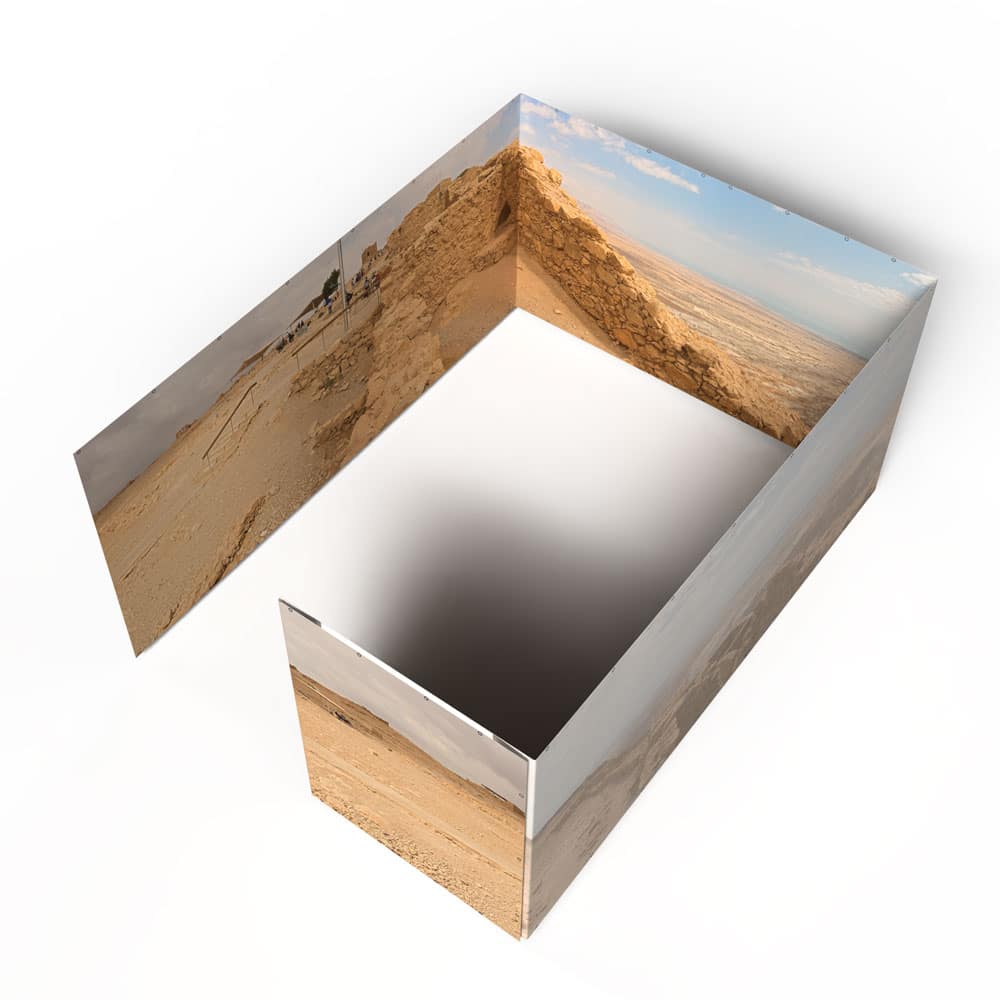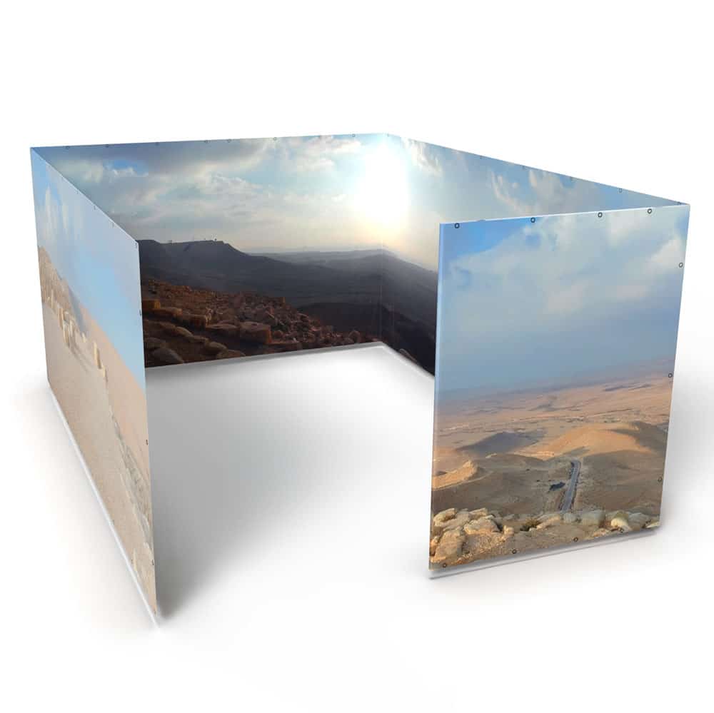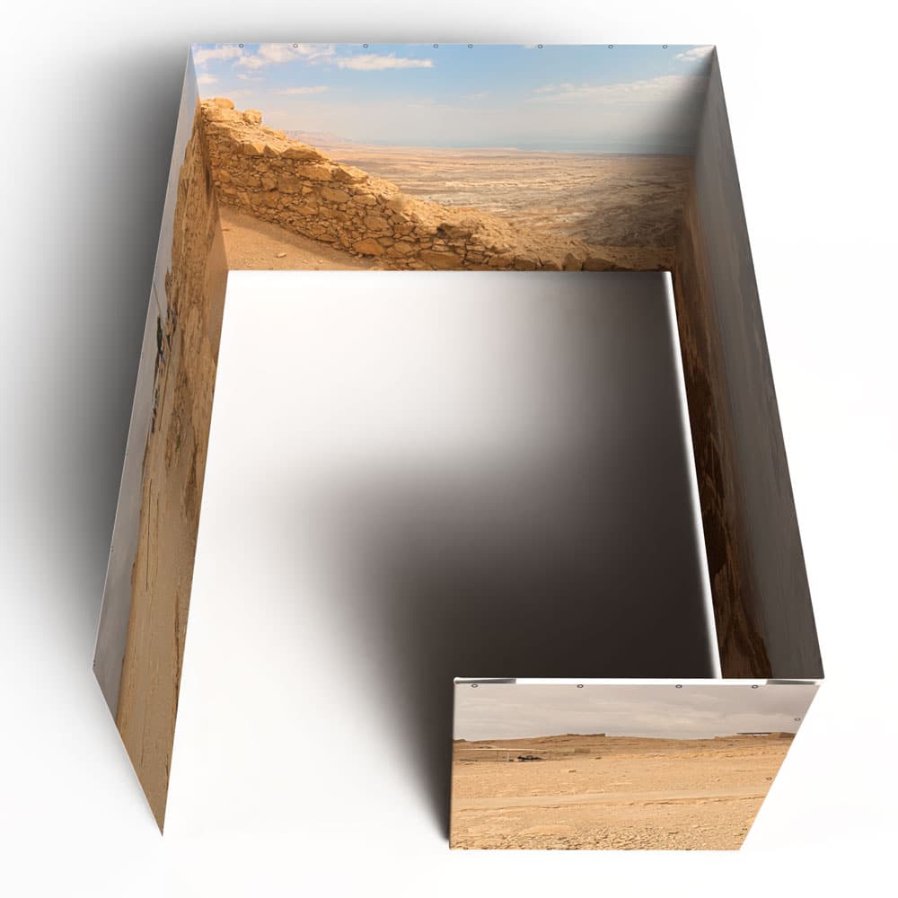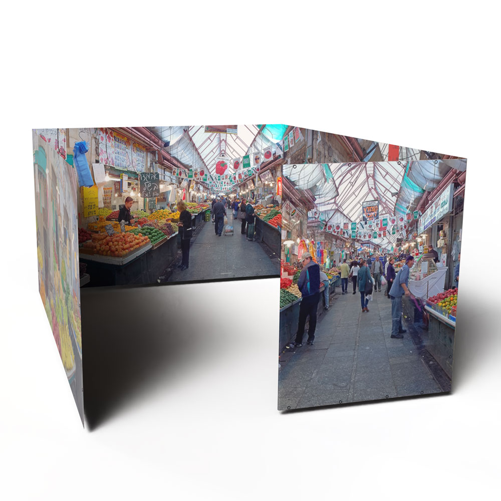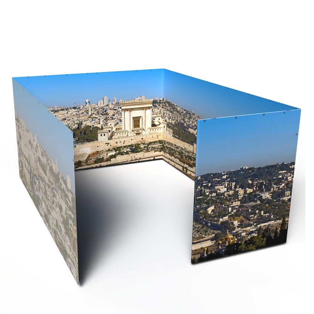 • The image is printed floor-to-s’chach along the entire length of all four sukkah walls for a truly immersive experience!