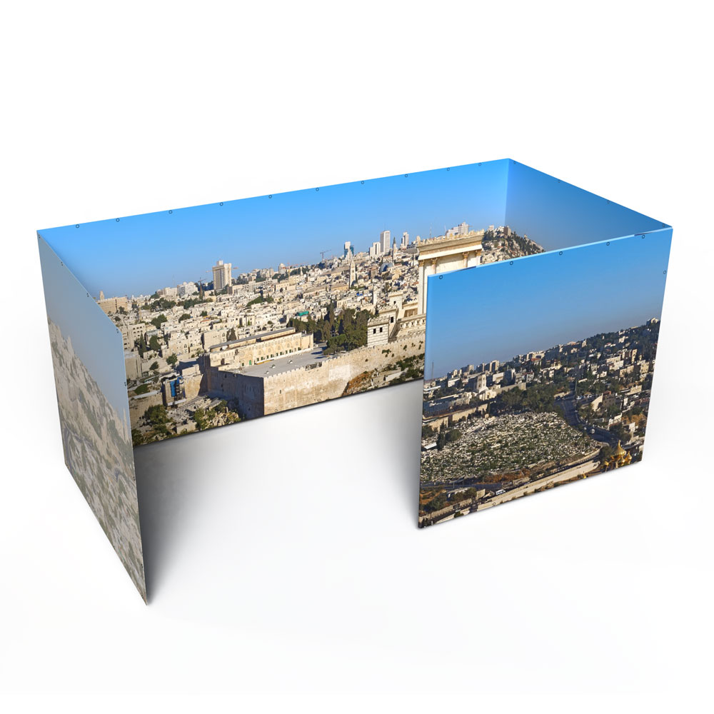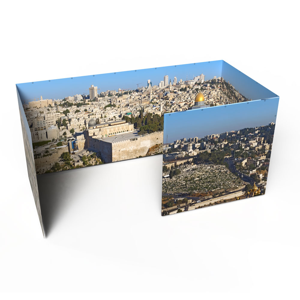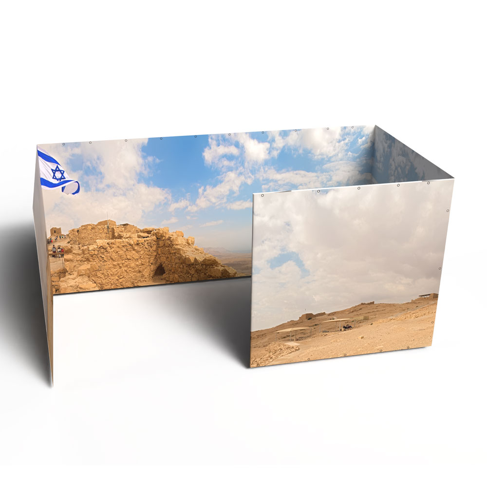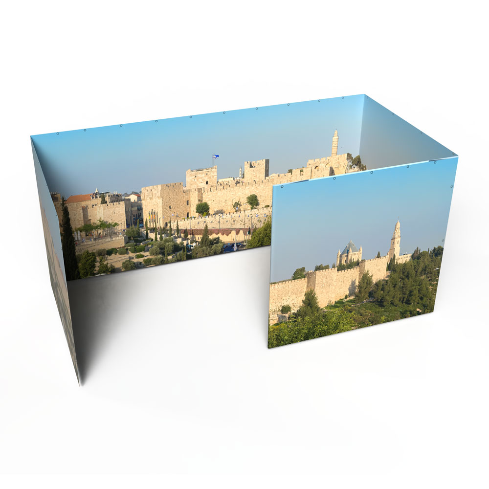 Ready to upgrade your sukkah walls and spend your Sukkot immersed in an Israeli vista of your choice? If you already own an 8×16 Sukkah Project® tubular metal sukkah frame and want to make it even more beautiful with Panoramic Sukkah walls, you’ve come to the right place!  Please note, this product includes the Panoramic Sukkah walls ONLY for an 8×16 Sukkah Project® tubular metal sukkah; it does not include the frame, bungees, bamboo roof poles, etc.  If you would like to purchase a full Panoramic Sukkah kit, you can do that here: 8×16 Panoramic Sukkah Kit.
