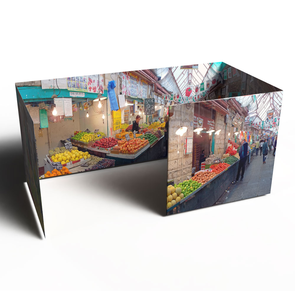 • The image is printed floor-to-s’chach along the entire length of all four sukkah walls for a truly immersive experience!