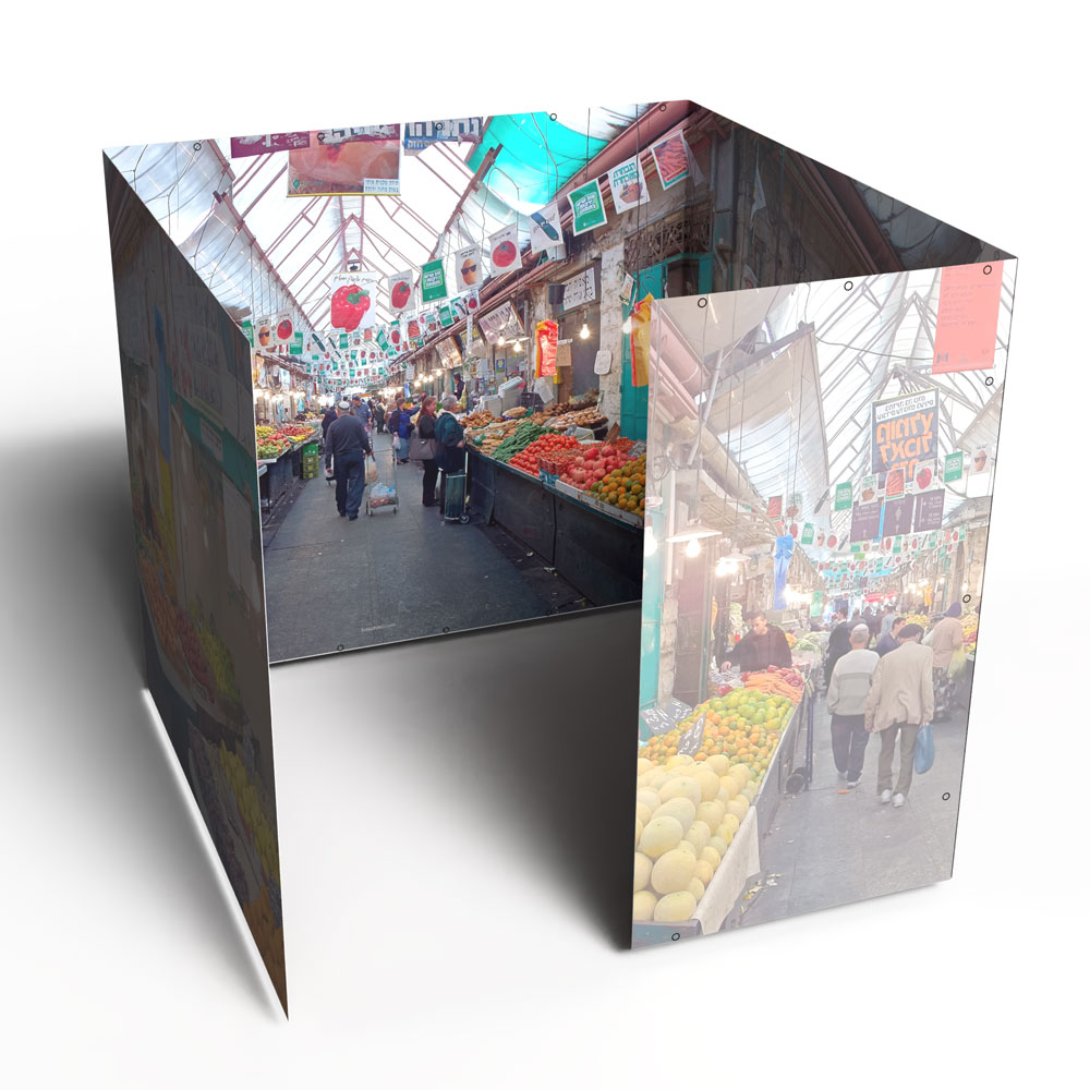 • The image is printed floor-to-s’chach along the entire length of all four sukkah walls for a truly immersive experience!